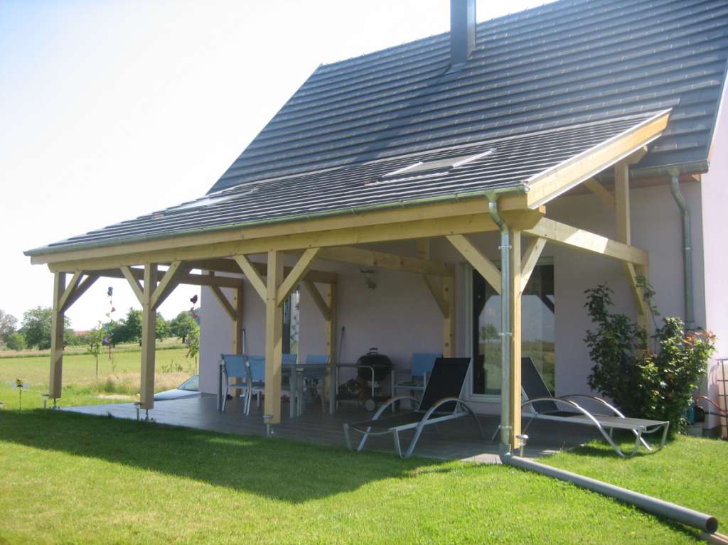 - Véranda avec structure en lamellé-collé.